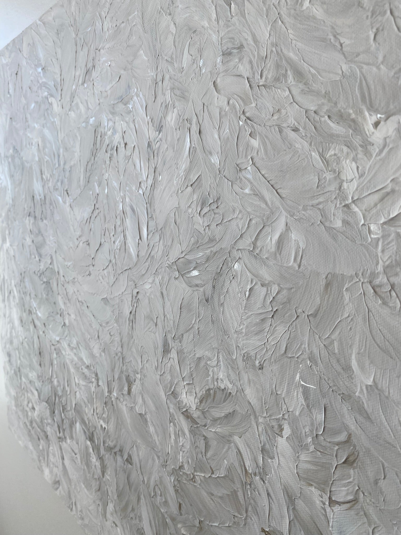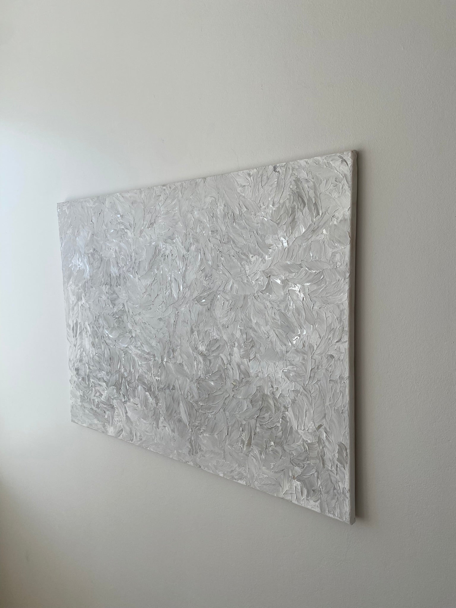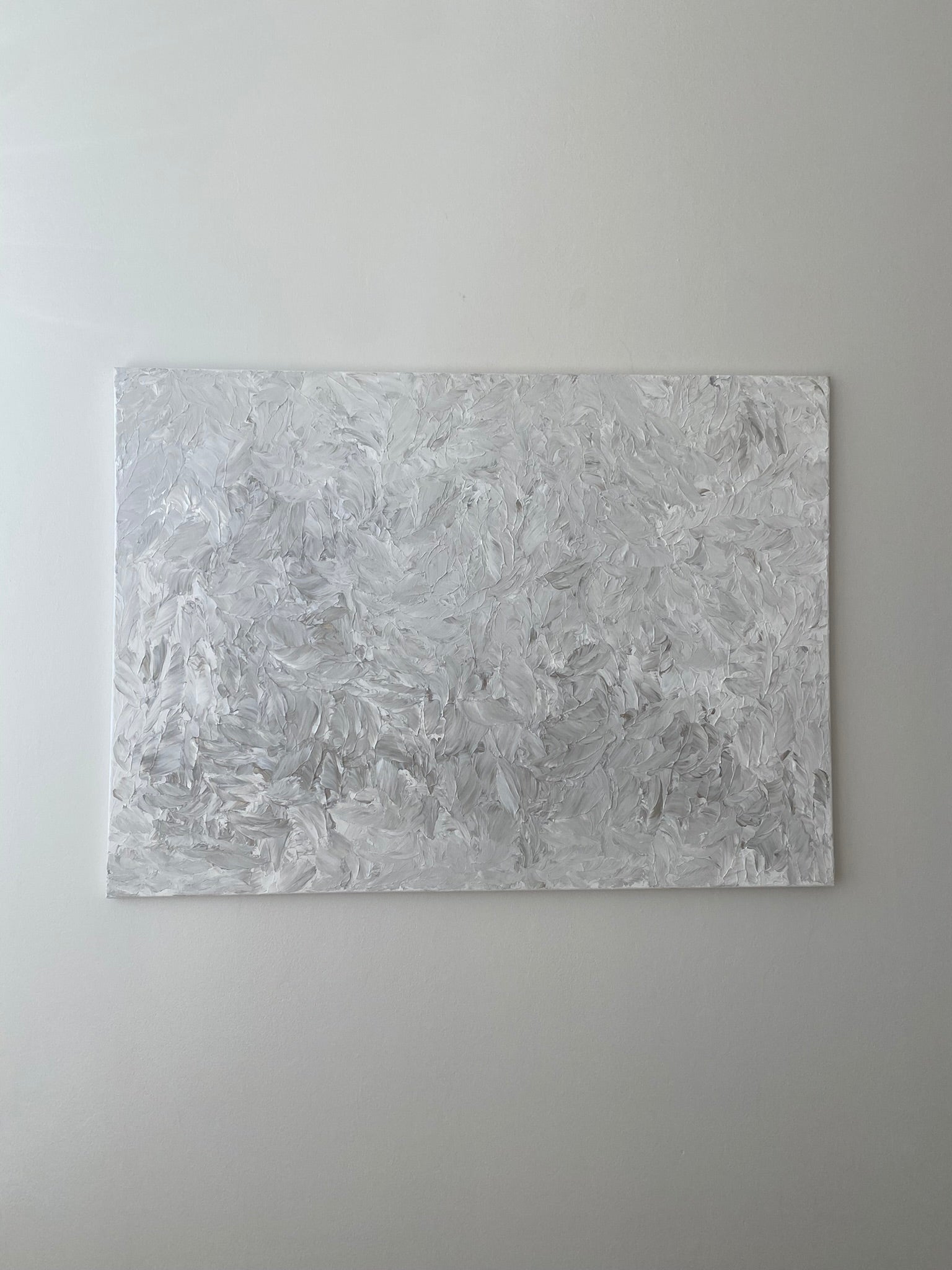 Every brushstroke is intentional yet delicate, echoing the soft clarity of silence and space. Whether displayed in a living room, bedroom, or modern entryway, this piece brings gentle presence and lasting calm.