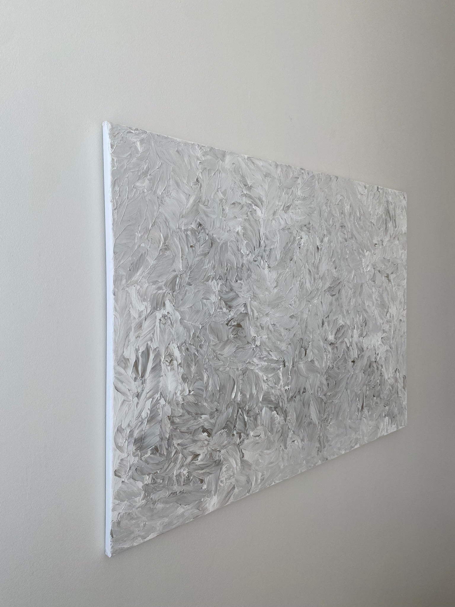 Left in the Light captures the quiet beauty of a moment suspended in stillness—when morning light gently lingers, illuminating the world in soft greys and whites. This original abstract painting is a meditation on calm, openness, and the fleeting glow of natural light.