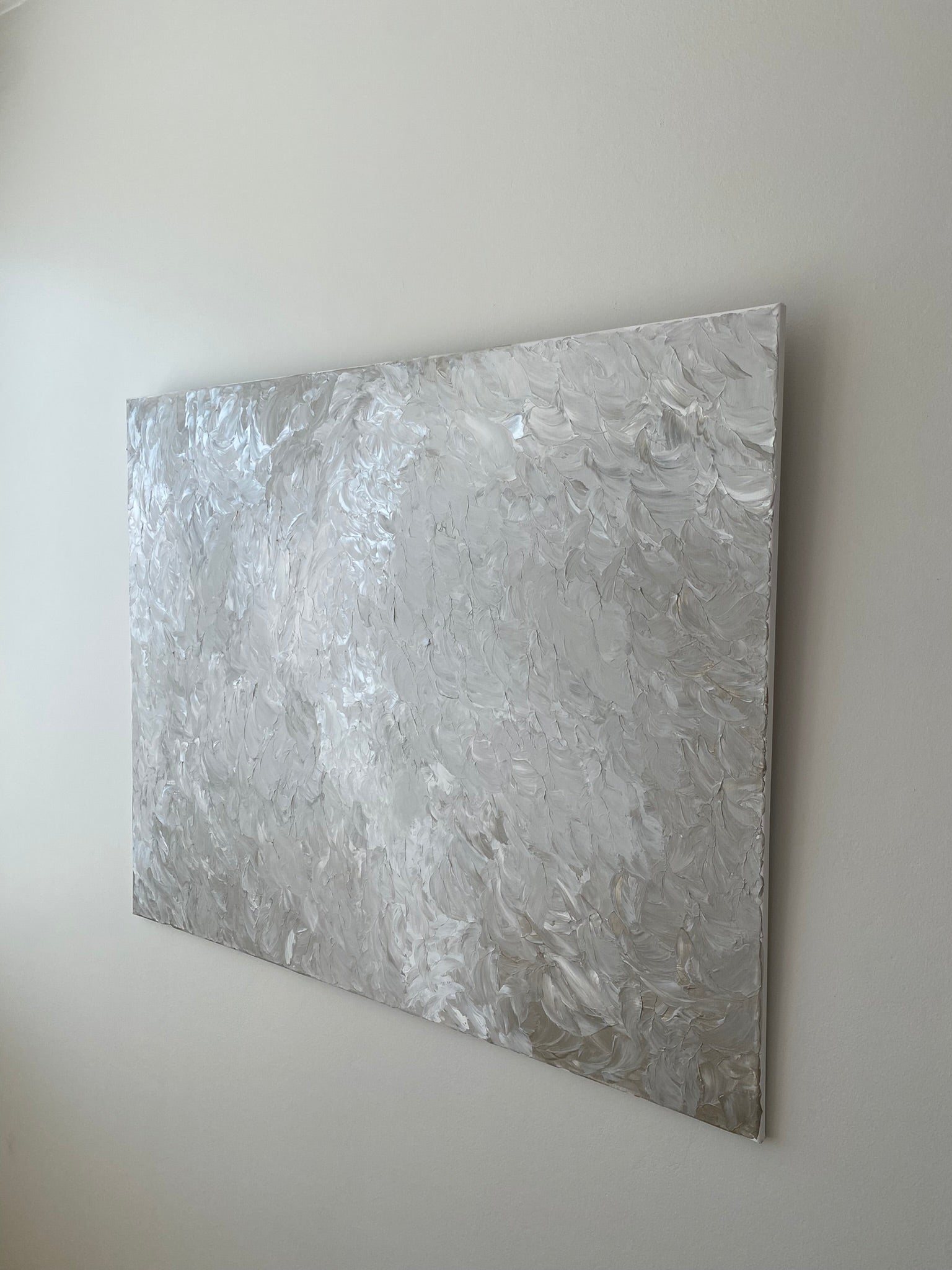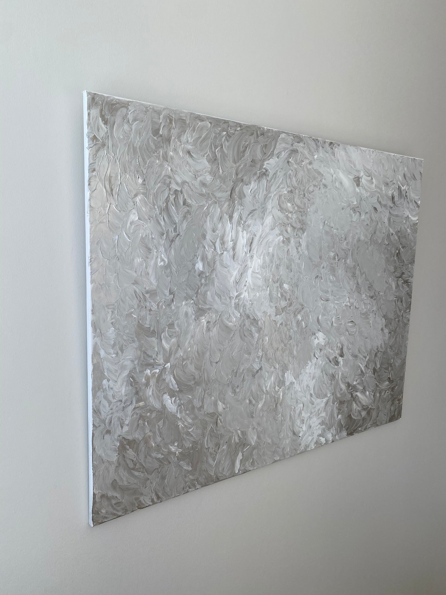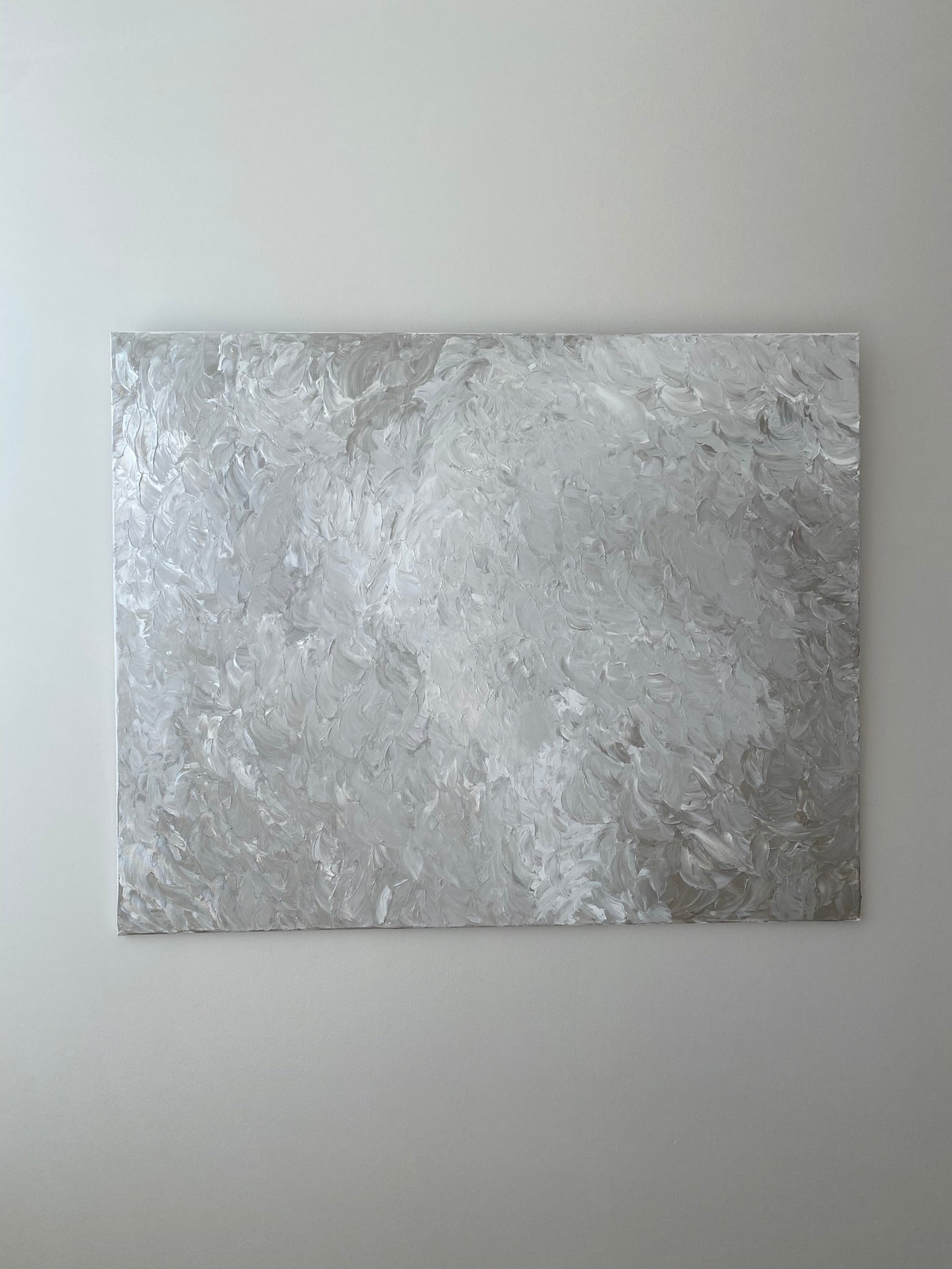 Nightless Night is a quiet tribute to the ethereal glow of Nordic midsummer, when night never fully arrives and the sky holds a lingering softness. Painted in gentle layers of silver, soft grey, and warm white, this piece captures the stillness and subtle luminosity of those endless evenings.